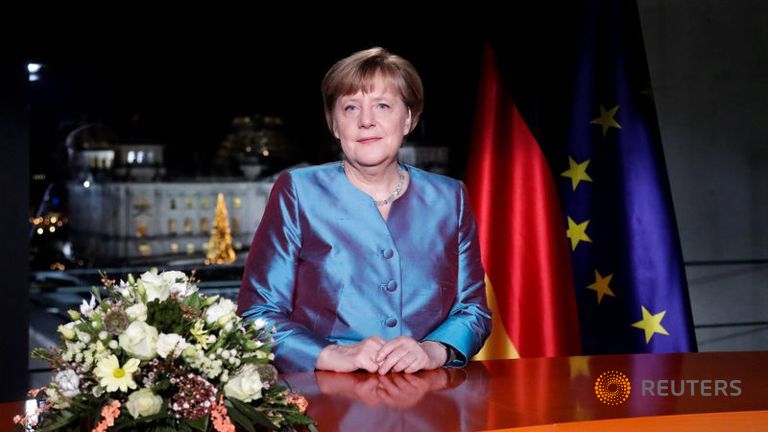 Thủ tướng Đức Angela Merkel sau bài phát biểu năm mới tại Phủ Thủ tướng ở thủ đô Berlin, Đức. Ảnh: Reuters