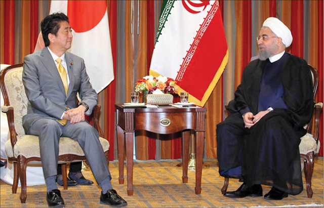 Thủ tướng Nhật Bản và Thủ tướng Iran trong một cuộc gặp năm 2017. Ảnh: Kyodo News