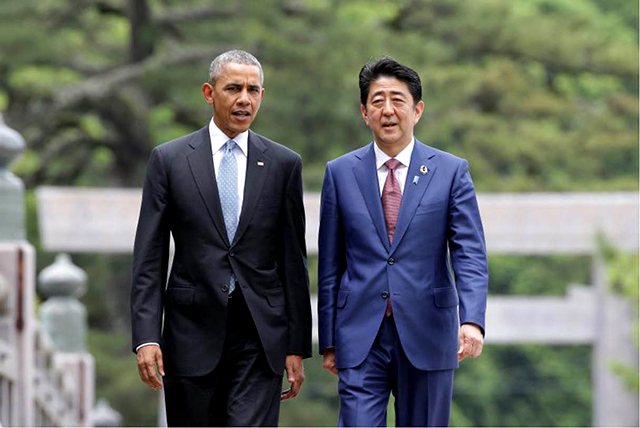 Tổng thống Obama và Thủ tướng Abe trong chuyến thăm Hiroshima. Ảnh: IBT