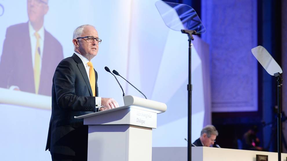 Thủ tướng Úc Malcolm Turnbull có bài phát biểu quan trọng tại Đối thoại Shangri-la ngày 2/6/2017. Ảnh: IISS