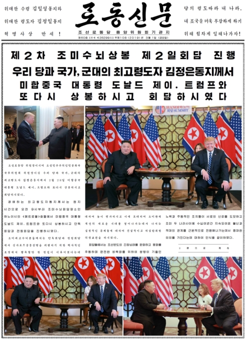 Tờ Rodong Sinmun đăng tải bài viết khá dài cùng 13 bức ảnh về các cuộc gặp của 2 nhà lãnh đạo trong ngày 27-28/2 tại Hà Nội. “Chủ tịch Kim Jong-un bày tỏ lời cám ơn Tổng thống Trump vì đã có những nỗ lực tích cực cho cuộc gặp và các cuộc đối thoại thành công… hứa hẹn về cuộc gặp tiếp theo”.