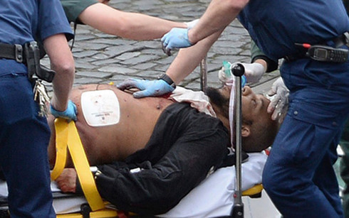 | Khalid Masood được cảnh sát và nhân viên y tế sơ cứu tại hiện trường vụ tấn công. Ảnh: Reuters. |