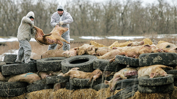 Tiêu hủy heo bị nhiễm virus tả châu Phi - Ảnh: AFP