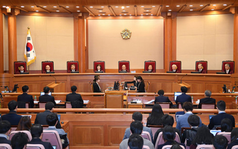 | Quang cảnh một phiên điều trần của Tòa Hiến pháp Hàn Quốc. (Ảnh: New York Times) |
