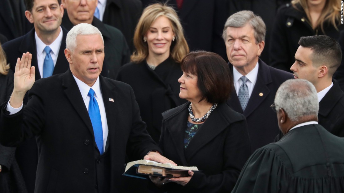 Phó Tổng thống Mike Pence tuyên thệ trước Thẩm phán Clarence Thomas. Ảnh: CNN