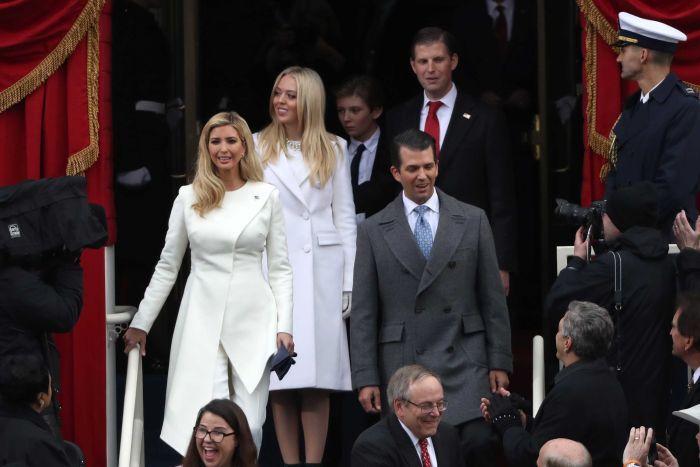 Các con của Tổng thống Donald Trump gồm Ivanka Trump, Tiffany Trump, Barron Trump, Eric Trump và Donald Trump Jr. đến dự lễ nhậm chức. Ảnh: Reuters