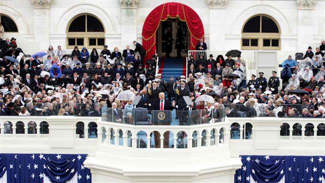 Chỉ vài phút trước đó, tỷ phú 70 tuổi đảng Cộng hòa đã đặt tay trái của mình lên cuốn kinh thánh từng được Tổng thống Abraham Lincoln dùng và đọc lời tuyên thệ gồm 35 từ theo quy định của Hiến pháp, chính thức trở thành Tổng thống thứ 45 của Mỹ.