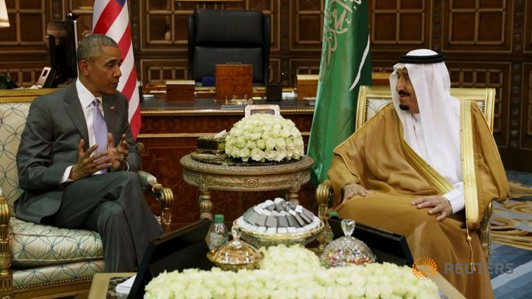 Tổng thống Mỹ Barack Obama gặp Quốc vương Saudi Arabia Salman. Ảnh: Reuters