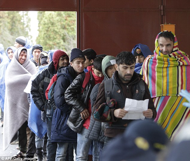 Dòng người xếp hàng đăng ký xin tị nạn tại khu vực Lendava, sau khi vượt qua biên giới Croatia-Slovenia. Ảnh: AFP