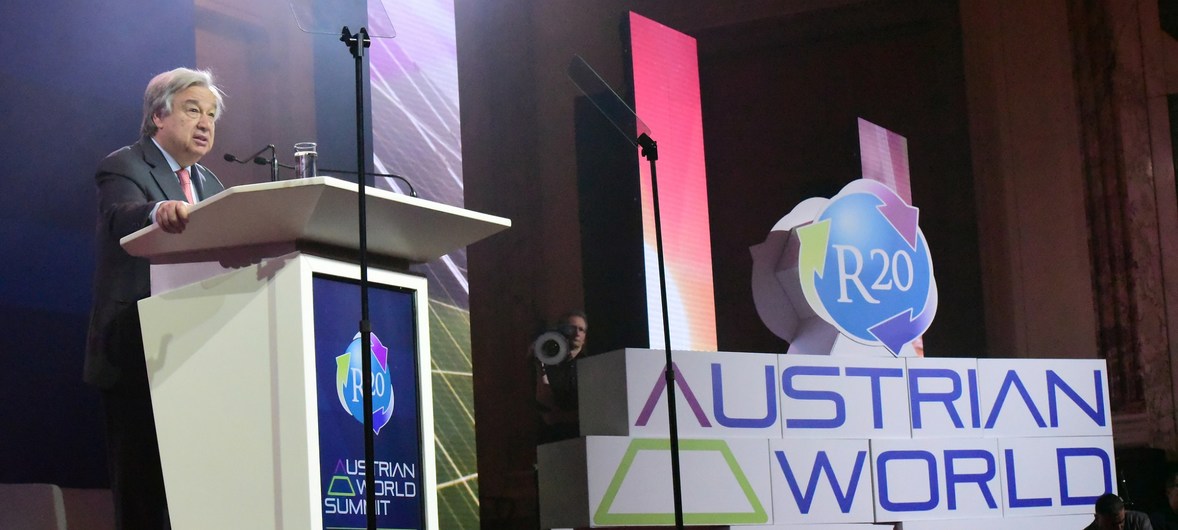 Tổng thư ký LHQ António Guterres tại Hội nghị thượng đỉnh thế giới Áo R20. Ảnh: UN