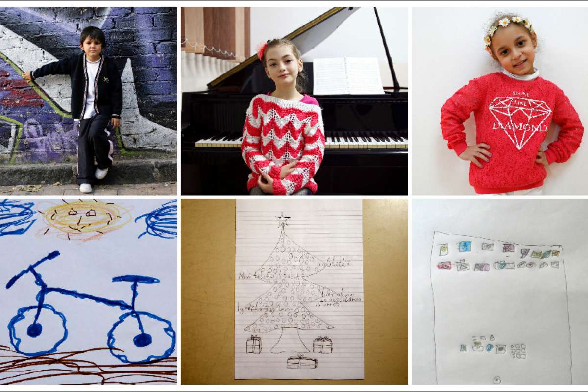 | (Từ trái sang) Matias Ugarte, 6 tuổi đến từ Mexico muốn có một chiếc xe đạp; Emma Stanisic, 9 tuổi đến từ Bosnia và Herzegovina muốn có một chiếc điện thoại mới hoặc một chiếc máy tính bảng; Lynn Habbouche, 6 tuổi đến từ Lebanon muốn khỏi bệnh bạch cầu và một chiếc iPad. Ảnh: Reuters, Straitstimes |