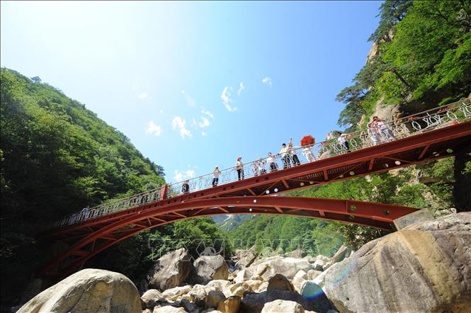 Du khách thăm quan khu du lịch núi Kumgang ở Triều Tiên. Ảnh: AFP/TTXVN