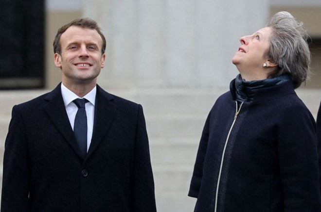 Thủ tướng Anh Theresa May và Tổng thống Pháp Emmanuel Macron. Nguồn: AFP