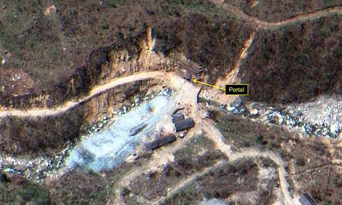 Một cổng đường hầm tại bãi thử hạt nhân Punggye-ri hồi năm 2016. Ảnh: Digital Globe.