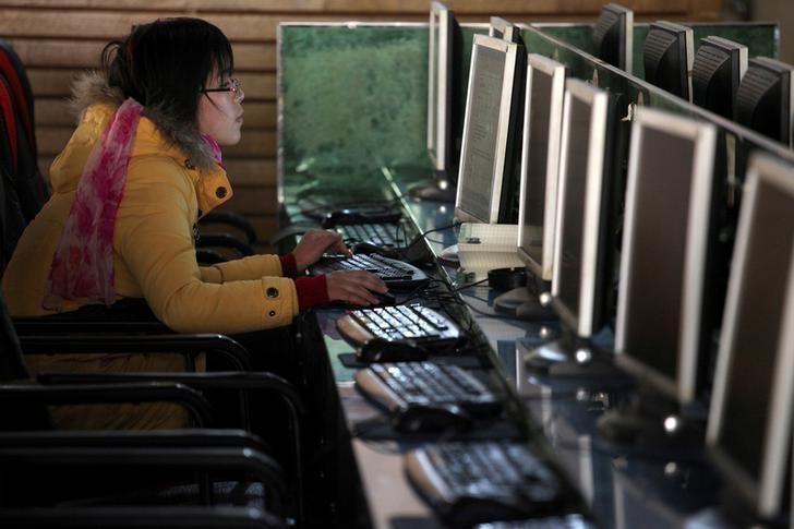 Một phụ nữ Trung Quốc đang sử dụng internet trong một quán cafe. Ảnh: REUTERS