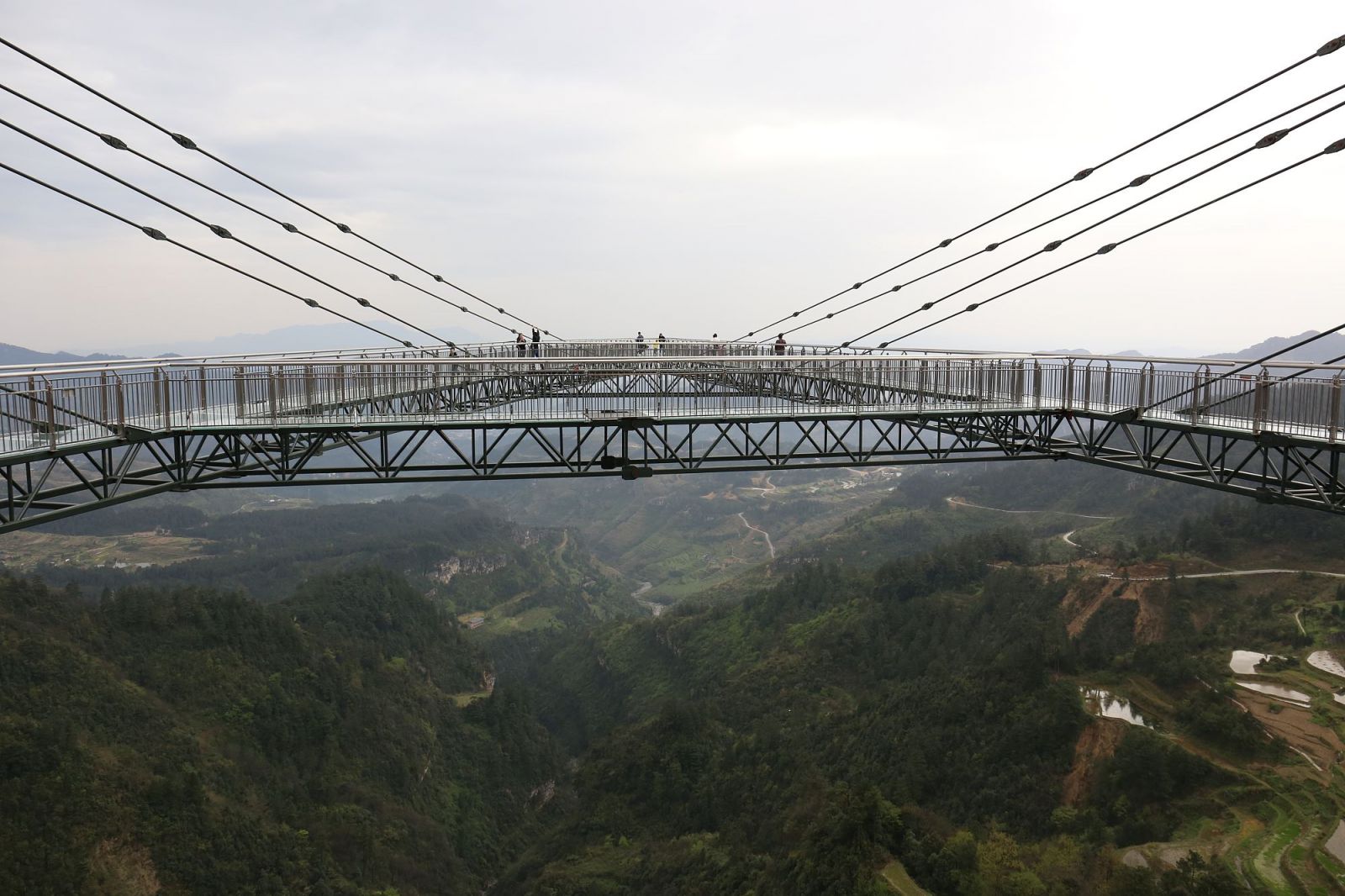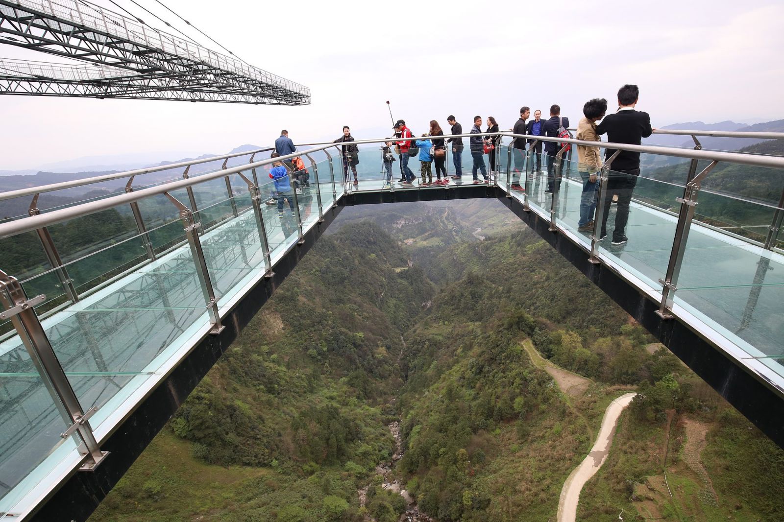 Trung Quốc hiện có nhiều cây cầu và lối đi bộ bằng kính, bao gồm cả cây cầu kính dài nhất và cao nhất thế giới - cầu Zhangjiajie Grand Canyon, nổi tiếng với thử nghiệm độ chắc chắn bằng búa tạ và một chiếc xe trọng tải 2 tấn.