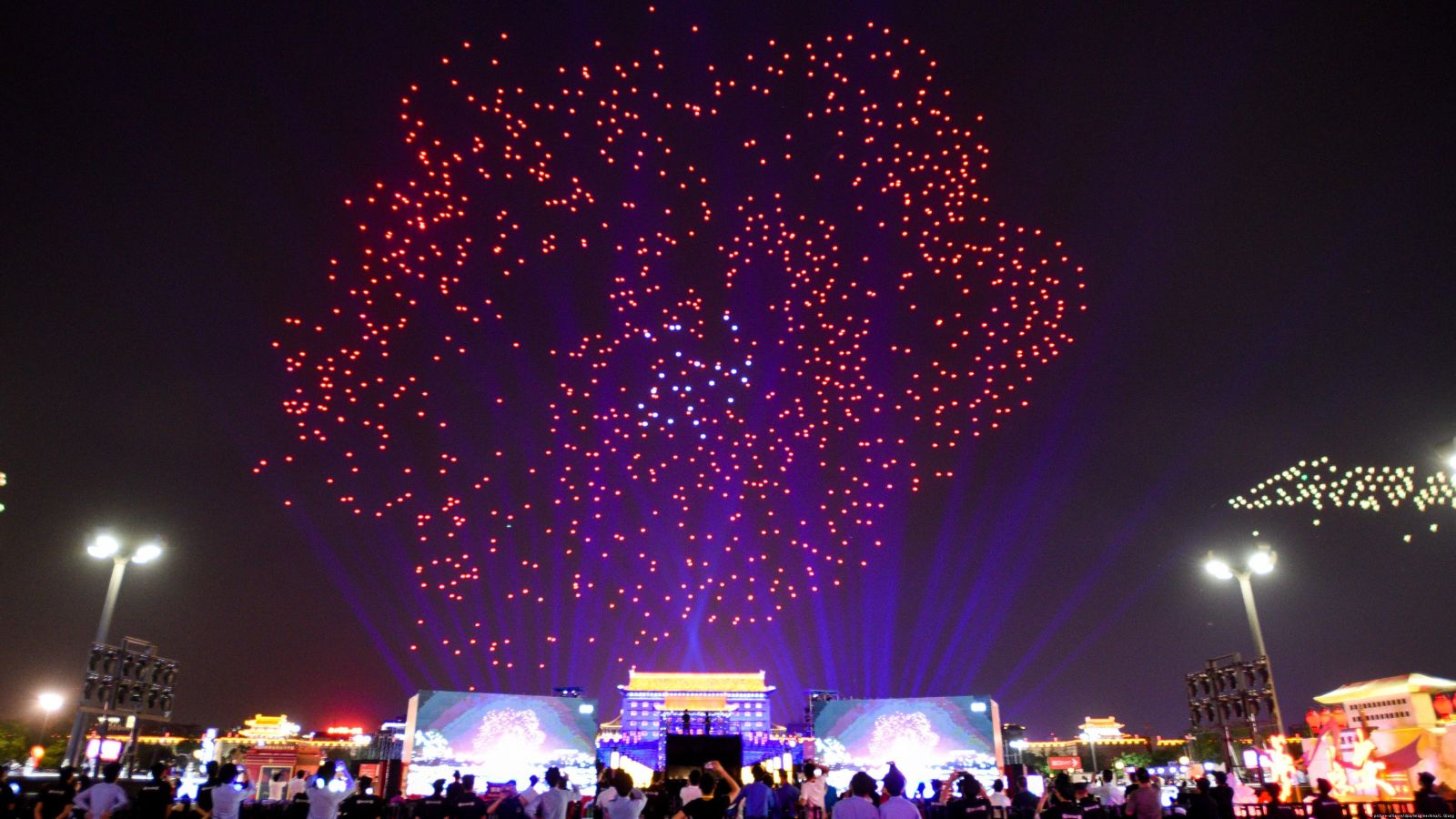 Hãng tin DW ngày 3/5 đưa tin, công ty sản xuất thiết bị bay không người lái Ehang (Trung Quốc) vừa thiết lập kỷ lục Guinness mới, với màn biểu diễn của hơn 1.300 máy bay không người lái được gắn thiết bị phát sáng đồng loạt chao liệng trên bầu trời và tạo nên nhiều hình ảnh tuyệt đẹp ở thành phố Tây An.