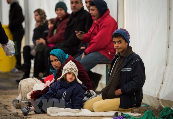 Người di cư chờ làm thủ tục đăng ký lưu trú tại Berlin, Đức. Nguồn: AFP/TTXVN