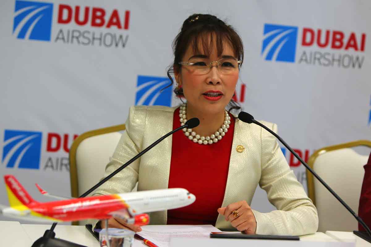 Bà Nguyễn Thị Phương Thảo - Tổng giám đốc hãng hàng không VietJet Air của Việt Nam, phát biểu trong một sự kiện ở Dubai. Ảnh: AFP