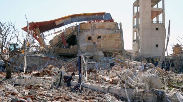 Một bệnh viện ở Syria bị phá hủy sau một vụ không kích. Ảnh: BBC
