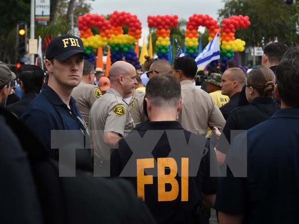 Nhân viên FBI theo dõi cuộc diễu hành của người đồng tính tại Tây Hollywood, California ngày 12/6. (Nguồn: AFP/TTXVN)