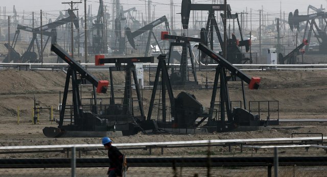 Trạm bơm tại mỏ dầu Kern River ở Bakersfield, California, Mỹ. Ảnh: AP