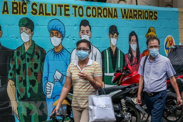 Người dân đeo khẩu trang phòng dịch COVID-19 tại Manila, Philippines, ngày 14/4/2021. (Ảnh: THX/ TTXVN)
