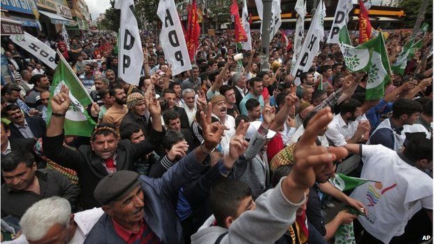 Những người ủng hộ Đảng cánh tả HDP hi vọng Đảng này sẽ lần đầu tiên có ghế trong Quốc hội. Ảnh: BBC.