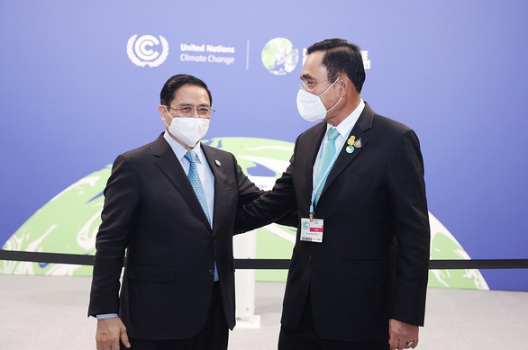 Thủ tướng Phạm Minh Chính gặp Thủ tướng Thái Lan Prayut Chan-o-cha tại Hội nghị COP26 ngày 1-11 - Ảnh: TTXVN
