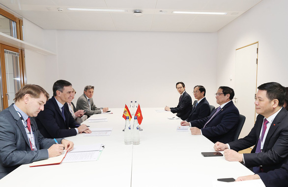 Trong khuôn khổ các hoạt động dịp Hội nghị cấp cao kỷ niệm 45 năm quan hệ ASEAN - EU tại Brussels, Bỉ, ngày 14/12 (giờ địa phương), Thủ tướng Phạm Minh Chính có cuộc gặp Thủ tướng Tây Ban Nha Pedro Sánchez Castejón.