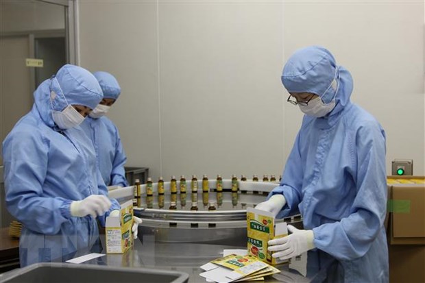 Đóng gói sản phẩm ở một nhà máy của Công ty Dược phẩm JPS (Nhật Bản). Ảnh: Đào Thanh Tùng/TTXVN