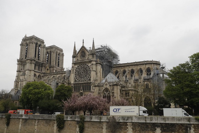 Trước đó, vào tháng 6, công nhân xây dựng đã bắt đầu loại bỏ hàng tấn khung thép bị lửa thiêu rụi trong vụ hỏa hoạn phá hủy một phần lớn kiến trúc nhà thờ, bao gồm cả phần mái và phần ngọn tháp. Quá trình phục chế chính thức sẽ bắt đầu vào năm 2021, sau khi việc cố định cấu trúc lõi của nhà thờ hoàn thành, Tổng Giám mục Paris là Đức Cha Michel Aupetit cho hay.