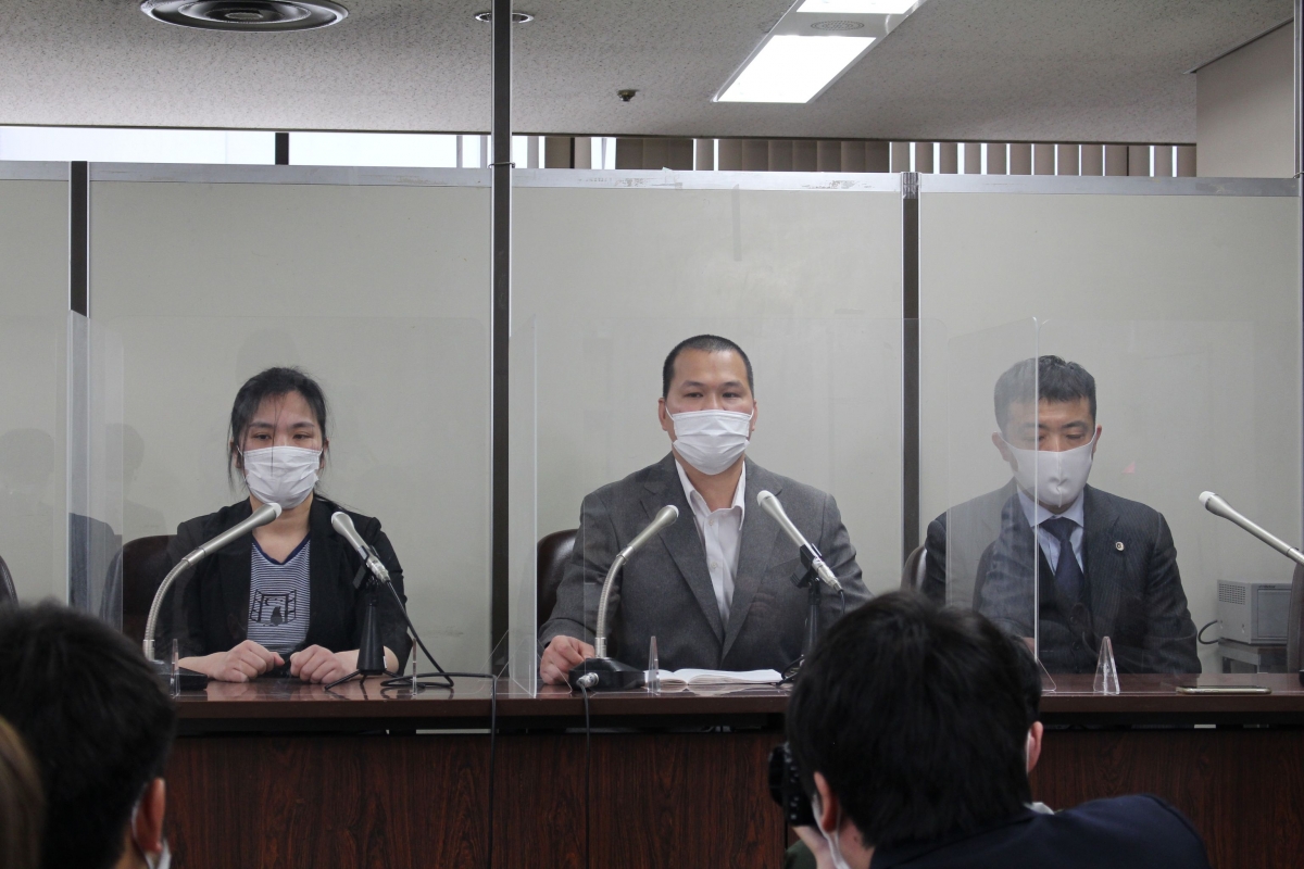 Mẹ và bố của em Lê Thị Nhật Linh (lần lượt từ trái qua) đã không đồng ý với phán quyết mức án tù chung thân đối với bị cáo Shibuya Yasumasa.