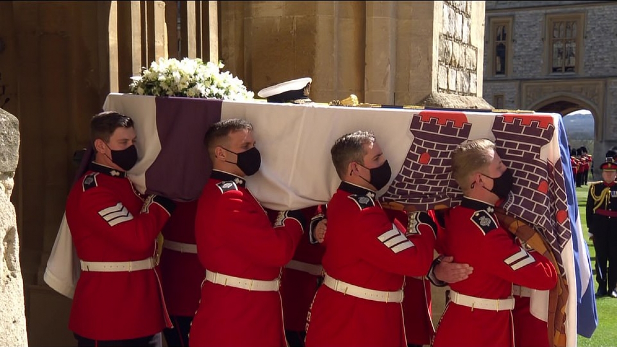 Tang lễ Hoàng thân Philip đã được tổ chức với loạt đại bác tiễn đưa, theo nghi lễ trang trọng nhưng vẫn tuân thủ quy tắc phòng chống dịch Covid-19. Ảnh: Daily Mail