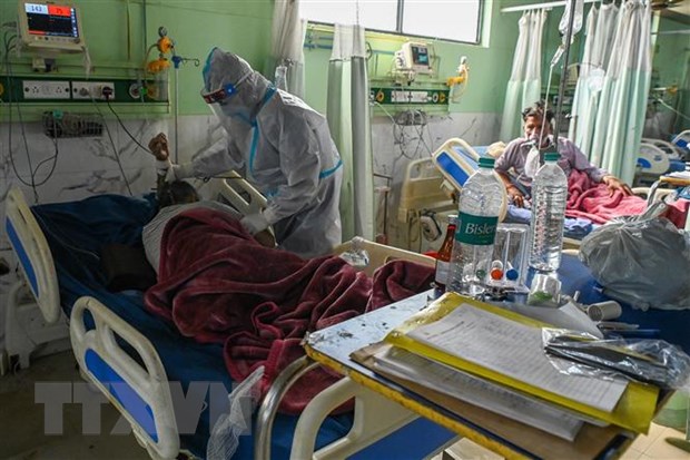 Điều trị cho bệnh nhân nhiễm COVID-19 tại bệnh viện ở Moradabad, Ấn Độ. (Ảnh: AFP/TTXVN)