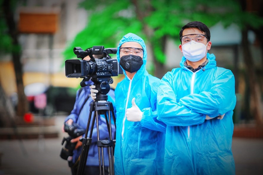 Phóng viên tác nghiệp trong bối cảnh đại dịch COVID-19. Ảnh: Laodong