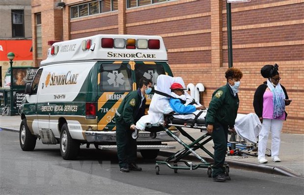 Một bệnh nhân nhiễm COVID-19 đang được chuyển vào bệnh viện ở New York, Mỹ ngày 2/4/2020. Ảnh: AFP/TTXVN