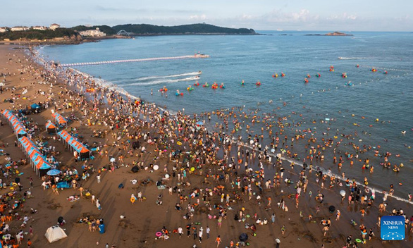Du khách đổ đến bãi biển ở thành phố Chu Sơn, tỉnh Chiết Giang, miền đông Trung Quốc giữa cái nóng vào ngày 2/8 - Ảnh: TÂN HOA XÃ