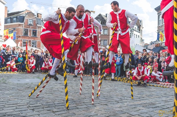 Theo truyền thuyết, truyền thống đi cà kheo có từ thời thành phố thường xuyên bị ngập lụt bởi lũ sông Meuse và Sambre. (Nguồn: echasseurs.org)