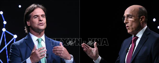 Ông Luis Lacalle Pou của đảng Quốc gia (Partido Nacional) và đối thủ liên minh cánh tả cầm quyền của Đảng Broad Front Daniel Martinez. Ảnh: TTXVN.