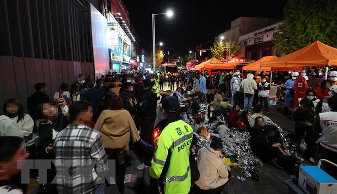 Khung cảnh hỗn loạn ở Itaewon sau vụ giẫm đạp kinh hoàng trong đêm hội Halloween ngày 29/10 vừa qua. Ảnh minh họa: Yonhap/TTXVN/Vietnam+
