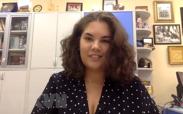 Chuyên gia Valeria Vershinina thuộc Trung tâm ASEAN, Học viện Ngoại giao Moskva (MGIMO) tại buổi trả lời phỏng vấn TTXVN. (Ảnh: Hồng Quân/TTXVN)