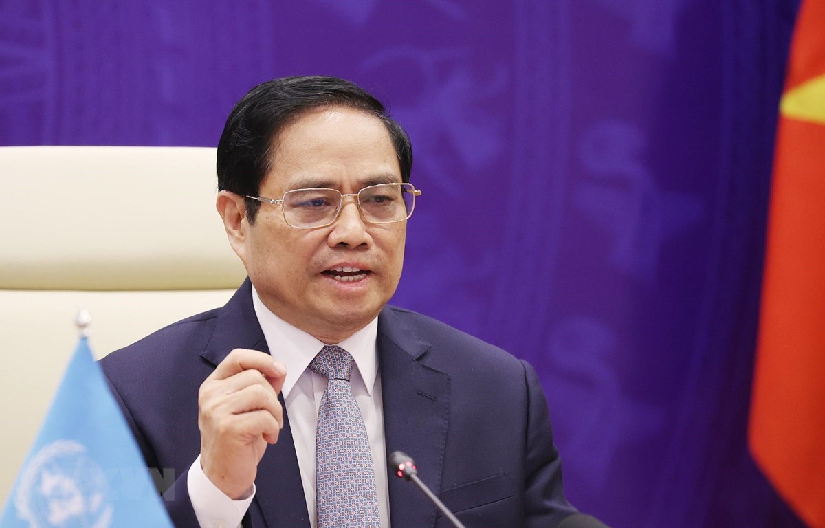 Thủ tướng Phạm Minh Chính phát biểu tại Phiên thảo luận mở Cấp cao của Hội đồng Bảo an Liên Hiệp quốc. (Ảnh: Dương Giang/TTXVN)