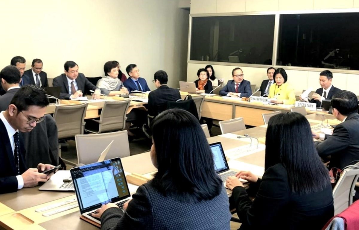 Các Trưởng/Phó Phái đoàn các nước thành viên ASEAN tại Geneva và cán bộ tham dự phiên họp đã chúc mừng Đại sứ Lê Thị Tuyết Mai bắt đầu nhiệm kỳ, bày tỏ cảm ơn sự chuẩn bị chu đáo của Phái đoàn Việt Nam.