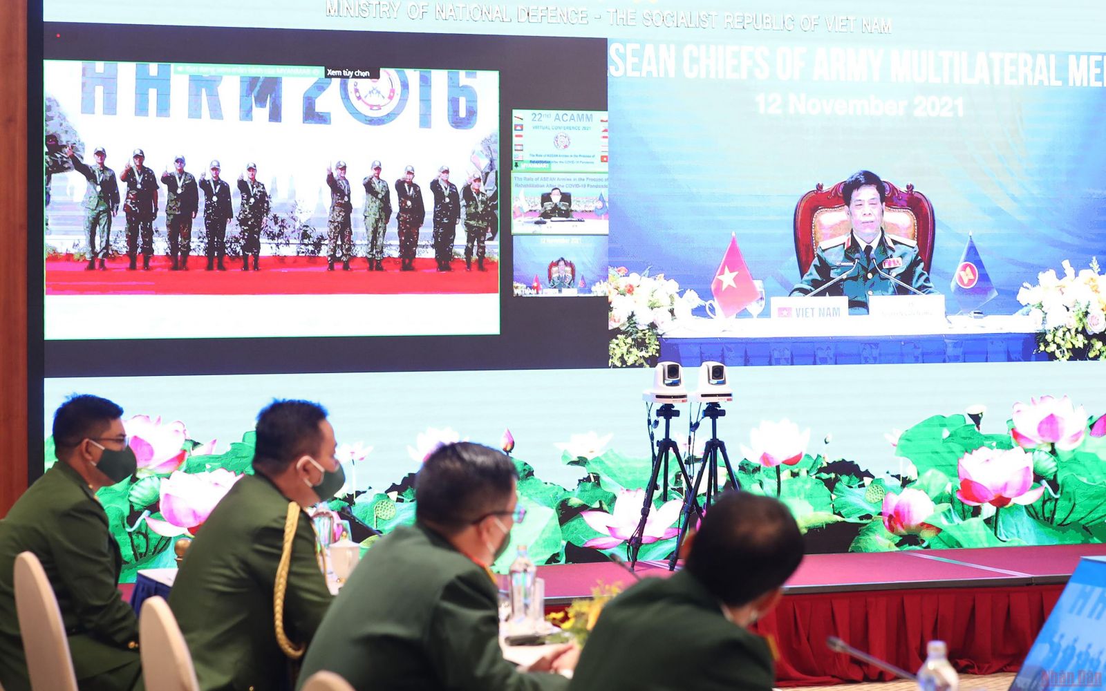 Về vai trò của lực lượng lục quân trong ứng phó đại dịch Covid-19, Trưởng đoàn Việt Nam khẳng định: Hiện nay, lục quân là lực lượng nòng cốt đi đầu trong nỗ lực chung của các quốc gia trong công tác phòng, chống dịch Covid-19, nhất là dưới tác động của đợt bùng phát dịch mới đây do chủng delta gây ra; chia sẻ kết quả và kinh nghiệm phòng, chống dịch tại các địa phương bị ảnh hưởng nặng nề thời gian qua; nhấn mạnh phương châm thích ứng với tình hình mới tại Việt Nam trong thời gian tới, cùng lúc thực hiện mục tiêu kép (phòng, chống dịch và phát triển kinh tế - xã hội) phù hợp với nhận thức chung của các nhà lãnh đạo tại Hội nghị cấp cao ASEAN lần thứ 38, 39. Đồng thời, Trưởng đoàn Việt Nam bày tỏ tin tưởng hợp tác quân sự - quốc phòng ASEAN sẽ góp phần kiểm soát, đẩy lùi dịch bệnh và ứng phó hiệu quả với các thách thức an ninh phi truyền thống, qua đó duy trì hòa bình, ổn định và phát triển tại khu vực.