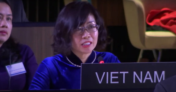 Đại sứ Lê Thị Hồng Vân phát biểu trước phiên bỏ phiếu ngày 6/7 - Ảnh chụp màn hình