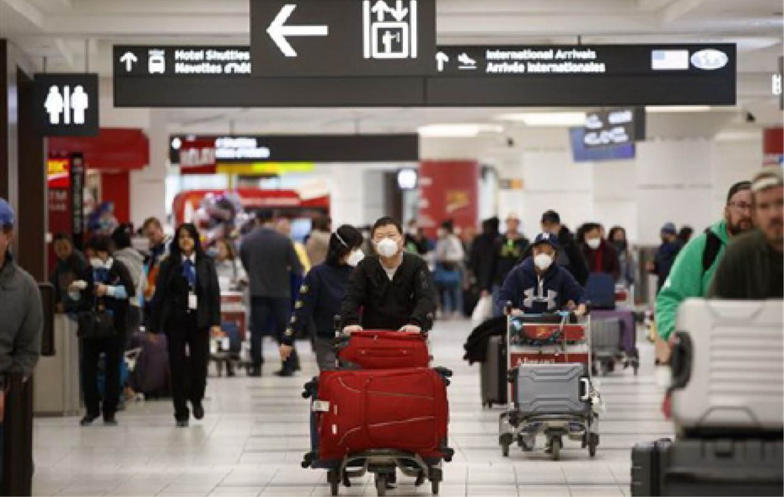 Hành khách đeo khẩu trang phòng virus Corona tại sân bay quốc tế Toronto Pearson, Canada. Ảnh minh họa: AFP/TTXVN