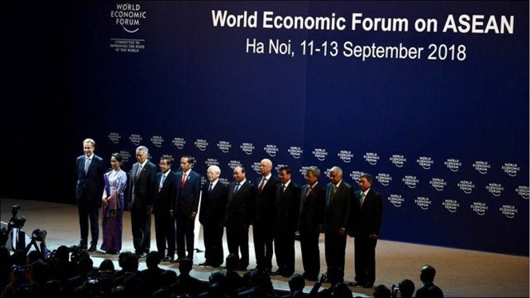Các nhà lãnh đạo tại WEF ASEAN 2018. Ảnh: AFP