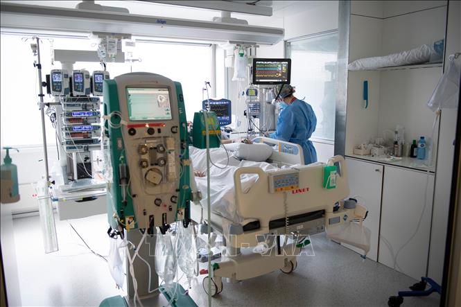 Điều trị cho bệnh nhân nhiễm COVID-19 tại bệnh viện ở Barcelona, Tây Ban Nha. Ảnh: AFP/TTXVN