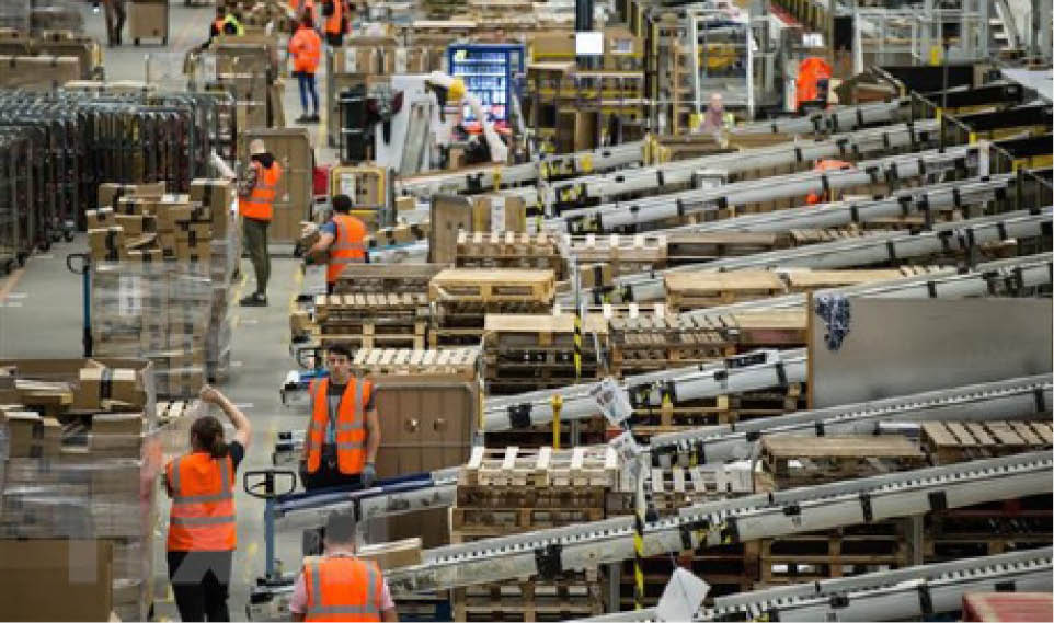 Hàng hóa được đóng gói tại một trung tâm dịch vụ của sàn thương mại trực tuyến Amazon. Ảnh minh họa: AFP/TTXVN